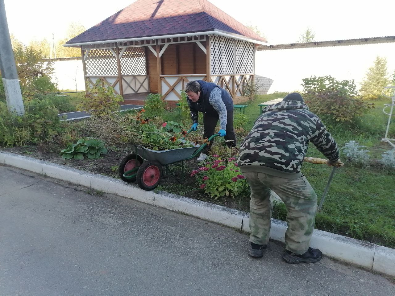 Октябрь — последний месяц активной работы на цветнике перед наступлением зимы. В это время садоводы завершают подготовку растений и почвы к зимовке, укрывают растения, защищают кустарники и цветы от холода. Сотрудники отделения "Специализированный жилой дом для граждан пожилого возраста и инвалидов" ГБУ "КЦСОН Краснобаковского муниципального округа" подготовили придомовую территорию, цветковые растения и клумбы к следующему сезону. Осенняя обрезка и укрытие растений на зиму – стандартные процедуры, которыми не стоит пренебрегать в конце сезона. Все цветы нуждаются в таком уходе. Также обрезка защитит многолетники от возможных болезней и вредителей, позволит в следующем году наслаждаться пышным цветением зеленых питомцев.