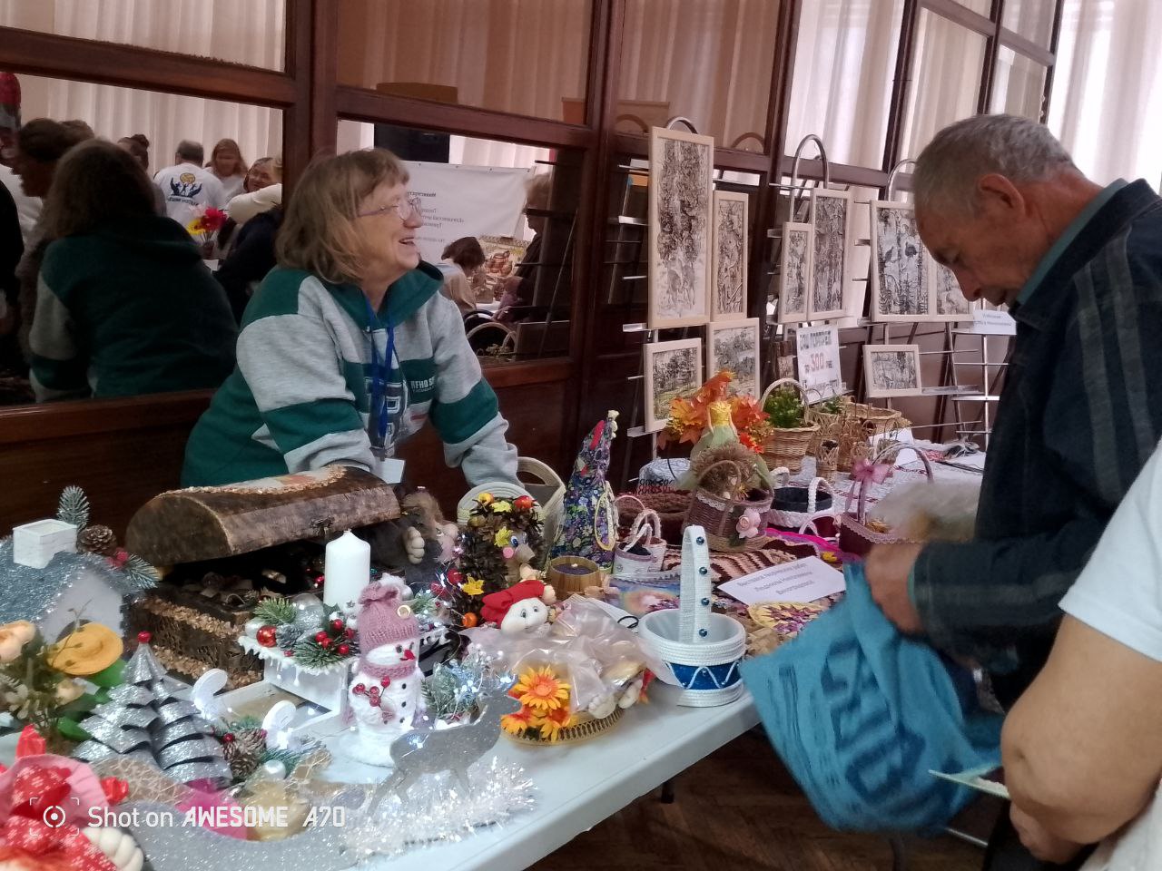 Представители отделения дневного пребывания- Людмила Анатольевна Амельченко и Людмила Николаевна Виноградова радовали посетителей выставки поделками,сделанными своими руками.Мероприятие было очень ярким и красочным:выставки,мастер-классы,выступление творческих коллективов,концертная программа. Кругом царила приятная праздничная суета.