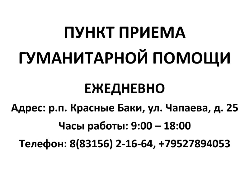 РЕЖИМ РАБОТЫ ПУНКТА ПРИЕМА ГУМАНИТАРНОЙ ПОМОЩИ