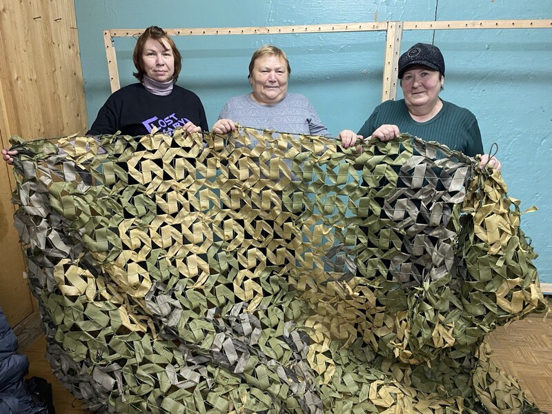 В п. Шеманиха социальные работники ГБУ "КЦСОН Краснобаковского муниципального округа" изготовили ещё одну маскировочную сеть для СВО
