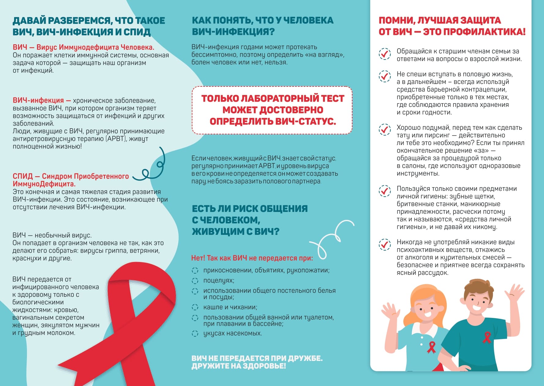 В России для этого делается очень много: от проведения информационных кампаний, разъясняющих, где и как сдать бесплатный тест на ВИЧ-инфекцию, и что делать, если результат оказался положительным, до бесплатного лечения ВИЧ-инфекции.
